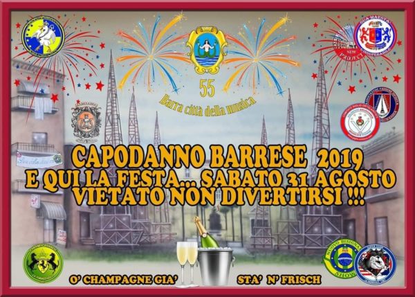 I festeggiamenti si apriranno con il Capodanno Barrese che si terrà il giorno 31 agosto e durerà fin dopo la mezzanotte, aprendo così il 1 settembre, mese che porta alla storica festa che anima i cuori di Barra. Tutta la popolazione è stata invitata in Piazza De Franchis, piazza principale del quartiere, per festeggiare l’ingresso del mese di settembre e l’attesa verso la Festa dei Gigli 2019.