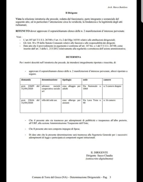 Così commenta lo staff della struttura in seguito alla pubblicazione della determinazione numero 828 del 15 aprile 2020. Nel documento compare anche la casa albergo per anziani Villa del Sole.