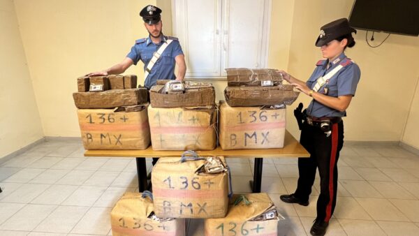 Sulla confezione infatti c’erano le foto di frutti esotici provenienti dall’America latina e centrale come l’annona cherimola e l’avocado. Un contenuto tropicale per un uomo che appariva lontano da quel mondo. In realtà la scoperta è avvenuta in caserma dove i militari dell’Arma hanno scartato il cellophane e trovato 7 cartoni identici. Tutti riportavano la scritta “136 + BMX”. All’interno però c’era droga, ben 231 chili di hashish pronta alla vendita per un valore di mercato che si aggira sui 9/10 euro al grammo e che avrebbe fruttato più di 2 milioni. L’uomo è stato trasferito in carcere mentre sono in corso indagini da parte dei Carabinieri sull’origine di quell’hashish.