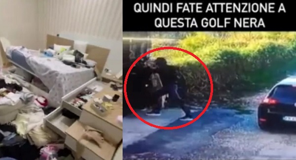 La proprietaria dell’appartamento ha pubblicato sui social le immagini delle telecamere di videosorveglianza che mostrano i tre uomini, più un quarto alla guida dell’autovettura, che si introducono in casa sua.