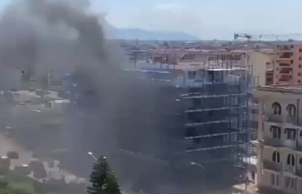 Paura nel palazzo in ristrutturazione, incendio avvolge le case: residenti scappano sulle impalcature