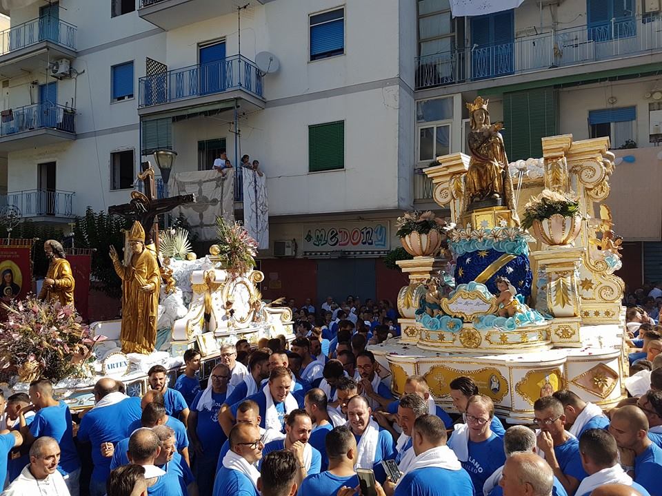 Lungo i circa sei chilometri dell’itinerario percorso delle immagini sacre portate in spalla dagli iscritti delle Unioni Cattoliche Operaie e dalle associazioni di marittimi e pescatori, infatti, le statue sono passate in mezzo a due ali di folla attraversando l’intero centro di Ercolano e terminando la processione nella Basilica di Pugliano accolte dal Cardinale Crescenzio Sepe. Alla fine della manifestazione religiosa, la giornata si è conclusa con un lungo spettacolo pirotecnico.