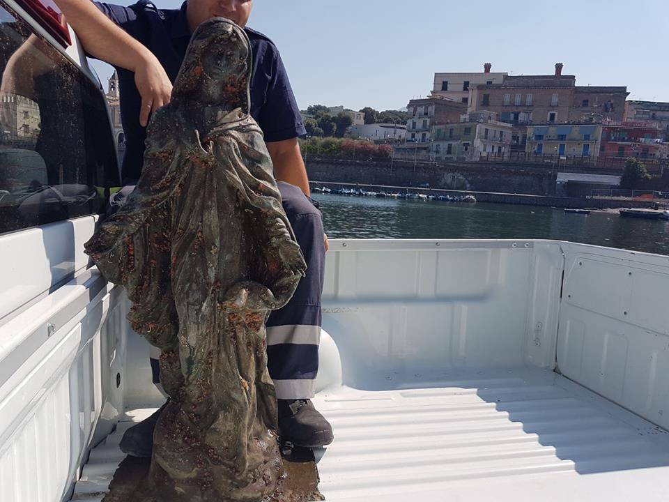 Ercolano – Il sindaco Ciro Buonajuto ha comunicato sul suo profilo Facebook che oggi i Palombari del Reparto Subacqueo della Marina Militare hanno recuperato, dal Santuario sottomarino a largo di Punta Quattro Venti, la statua della Madonna che protegge i pescatori.