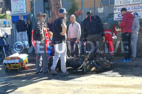 Spaventoso incidente avvenuto pochi istanti fa ad Ercolano, sulla via Benedetto Cozzolino. C’è stato uno scontro frontale tra auto e moto, all’altezza dell’incrocio con via S. Vito. Sul posto è intervenuta l’ambulanza che, proprio in questi istanti, sta soccorrendo un ragazzo, rimasto a terra a seguito del forte impatto.