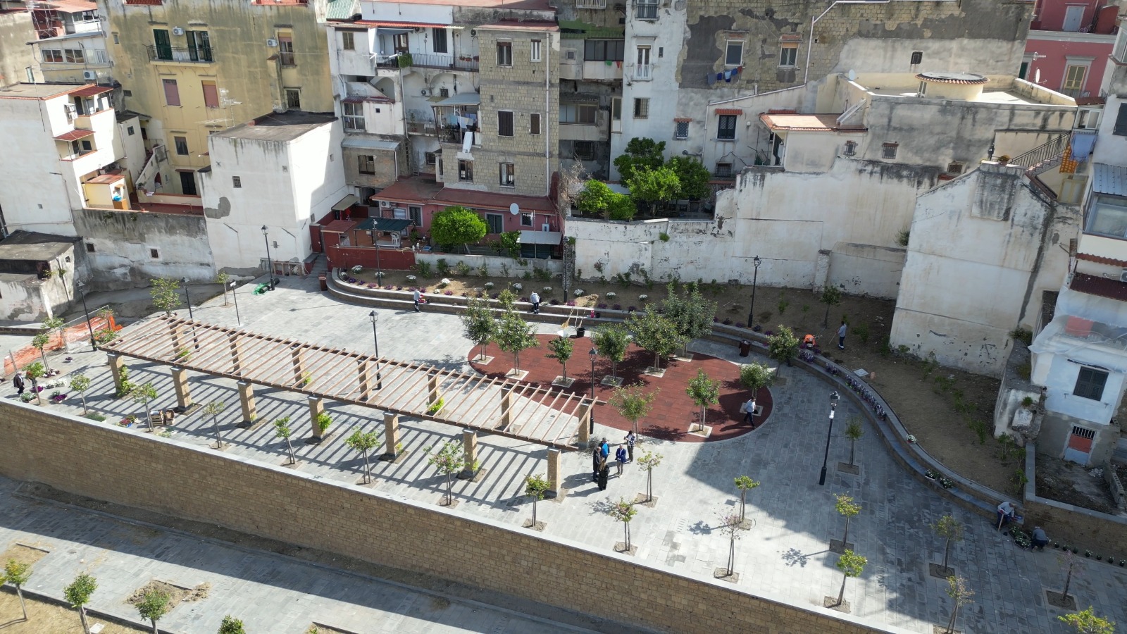 Un progetto di rigenerazione urbana che inizia nel 2014 e che ha previsto, tra l’altro, questo nuovo spazio pubblico, realizzato grazie al partenariato tra Comune di Ercolano (Fondi PICS – Regione Campania), Ministero della Cultura – Parco Archeologico di Ercolano ed il Packard Humanities Institute – Istituto Packard Beni Culturali; un esempio di rigenerazione non solo urbana ma anche sociale. Si tratta infatti di un quartiere che, sino a qualche tempo fa, è stato ostaggio della criminalità organizzata, e che adesso potrà diventare un luogo di incontro tra Ercolanesi e visitatori.