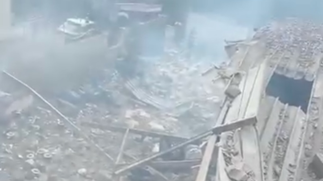 Le forze dell’ordine avrebbero accertato che si trattava di una fabbrica illegale, come inizialmente riportato. La nube di fumo bianca che si è alzata in cielo è visibile da chilometri.
