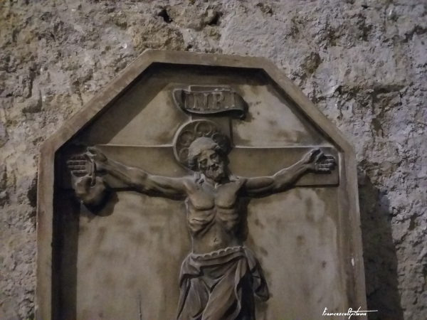 Ho scoperto, grazie a una visita guidata organizzata da Sii Turista Della Tua Città, che nei Sotterranei Gotici della Certosa di San Martino è conservato un crocifisso particolare, portando questo una macchia scura sulla parte destra del volto di Gesù, la quale secondo la tradizione è stata causata da un colpo di pietra ricevuto dalla figura. Perché il crocifisso fu raggiunto da una pietra è spiegato in una lapide posta accanto all’immagine di Cristo, così, invece di riscrivere semplicemente quella storia, ho deciso di riportarla in Lingua Napoletana, nel progetto di valorizzazione di questa lingua e della tradizione partenopea. Vi ricordo, infatti, che Vesuvio Live ha creato da tempo quella che ci risulta la prima (e forse l’unica) rubrica in Lingua Napoletana del web.