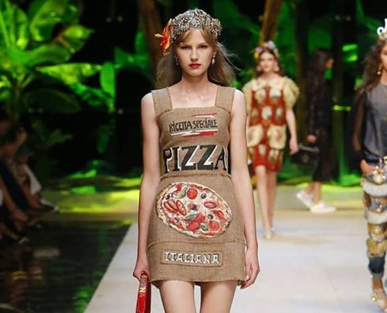 In passerella, all’ombra di piante di banane, sfila quell’immaginario “tropico italiano” che va da Napoli alla Sicilia, che i due stilisti prendono come spunto per descrivere l’immaginario del Meridione che piace ai turisti che, mai come quest’anno, hanno invaso Napoli e tutto il sud Italia. Ecco quindi la collezione con abiti lunghi o corti, stretti o a balze, arricchiti da stampe con pesci, biscotti, bambole, drink, gelati e spaghetti.