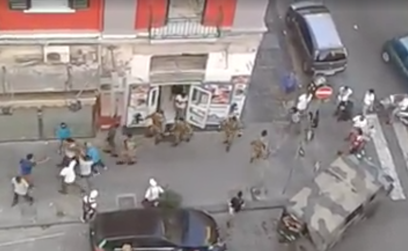 Dalle immagini si nota come i soldati siano stati letteralmente accerchiati da un gruppo di persone, che protestavano per i modi, a loro avviso, troppo brutali di eseguire il controllo. A protestare anche alcuni cittadini italiani.