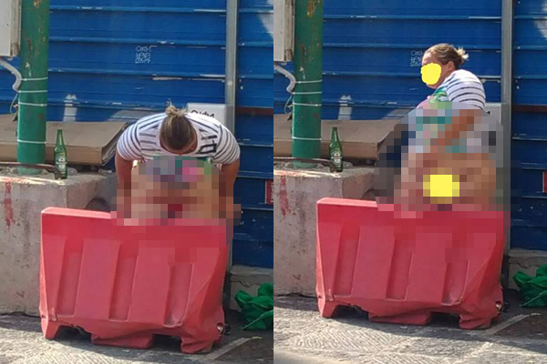 Questa immagine desta ancora più sconcerto. La donna, molto probabilmente non i pieno possesso delle proprie facoltà mentali, si trovava a pochi passi dalla fermata del bus, visibile quindi a migliaia di cittadini e turisti.