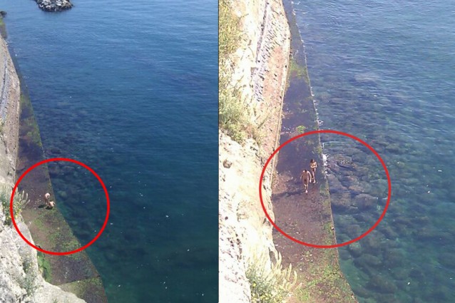 Stanno facendo il giro del web le foto dei due nudisti avvistati ieri mattina nei pressi di Castel Dell’Ovo. I due giovani sono stati visti da centinaia di turisti e passanti mentre si spogliavano alle spalle della fortezza, sull’isolotto di Megaride.