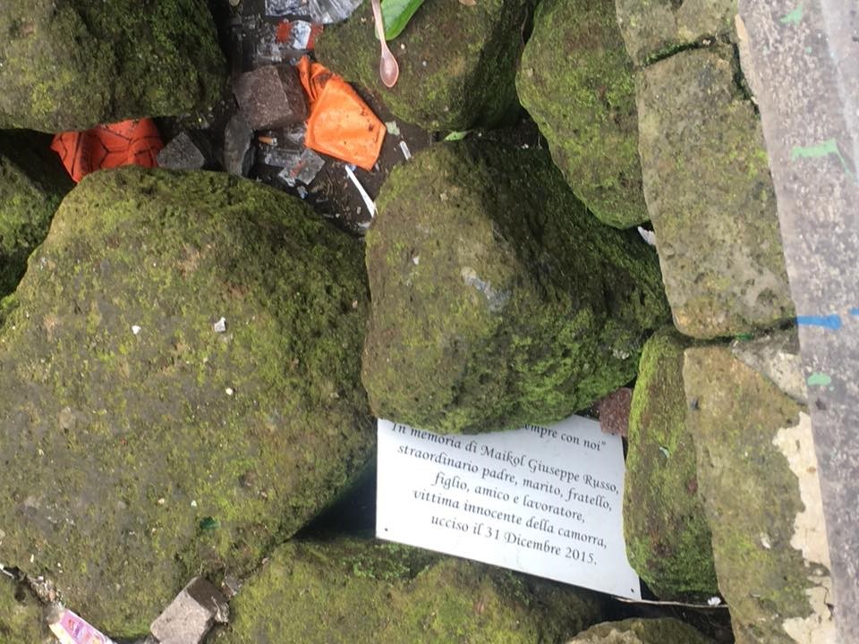 “Stamattina – ha scritto – mi sono recato, in qualità di delegato alla Memoria della Città della seconda municipalità, a piazza Calenda, ultimo lembo del territorio di nostra competenza, a pochi metri confinante con la quarta municipalità” dove ha potuto verificare, purtroppo, che “le mura greche sono deturpate dalla presenza di lattine, cartacce, ombrelli etc.(immondizia varia), e, come se non bastasse, uno dei due cartelli in memoria del povero Maikol giace tristemente tra le pietre tufacee delle antiche mura“.