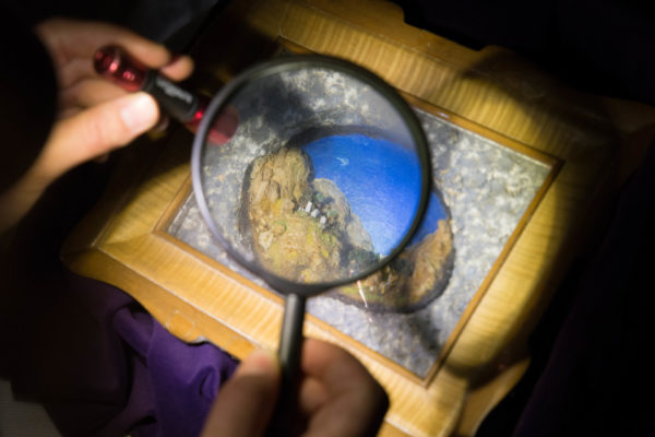 Ebbene sì: tutte le opere di Don Antonio sono inserite in piccoli o addirittura minuscoli oggetti, che vanno dagli astucci ai gusci di noce, dalle scatolette ai noccioli di ciliegio. La loro bellezza si può ammirare solo con l’ausilio di una lente d’ingrandimento; c’è addirittura un presepe in seme di canapa, il più piccolo del mondo mai creato da mano umana.