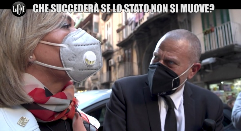 Tra le altre persone, Golia intervista anche Rossella Paliotto Presidente della Fondazione Banco di Napoli che annuncia l’apertura di uno sportello di ascolto e aiuto per le famiglie bisognose. La Presidente poi denuncia: “Lo Stato non ha ancora fatto arrivare la cassa integrazione del mese di marzo. A oggi le aziende non riescono a fare le pratiche presso le banche e le banche ancora non sono nella condizione di erogare le somme. Sono passati due mesi e ancora non è arrivato un euro. Se lo stato non si muove a dare queste somme si muove l’anti stato. La camorra lì dove c’è il bisogno e le persone non possono mettere il piatto a tavola comincia ad aiutare la gente”.