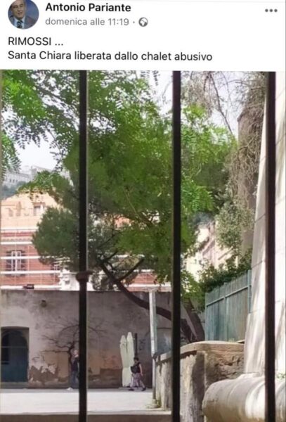 Fine degli aperitivi nel sagrato della chiesa del Monastero e del Chiostro di Santa Chiara. Lo ha annunciato Antonio Pariante del comitato di Porto Salvo. Fu proprio lui giorni fa a pubblicare sulla sua bacheca Facebook una foto con un carro funebre e di fianco i tavolini disposti. Secondo quanto riporta il Corriere del Mezzogiorno, sono stati sgomberati tutti i tavolini che consentivano alle persone di gustarsi un aperitivo ammirando la bellezza della celebre chiesa.