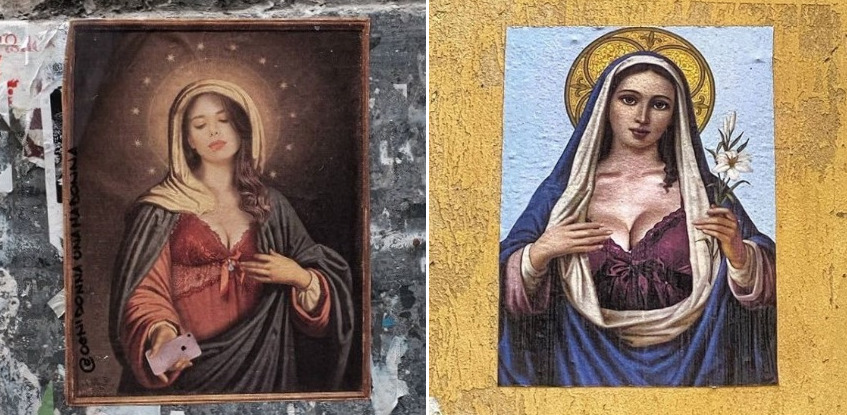 È una Madonna, insomma, che si riappropria della femminilità e diventa simbolo per eccellenza della donna che vive nel terzo millennio, con tutti i suoi problemi, le indecisioni, i drammi, i traumi. Una Madonna che (ri)diventa umana pur restando sacra, ma sacra in quanto donna. Non a caso il progetto si chiama Ogni Donna Una Madonna. Sono opere quindi che non hanno lo scopo di offendere il senso religioso o degradare l’immagine di Maria, ma che estendono la sacralità di cui è stata investita a tutto il genere femminile. I poster non negano la santità, al contrario: la affermano e la riconoscono a tutte le donne.
