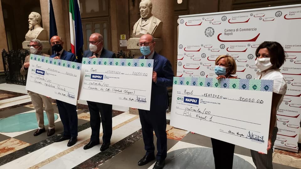 Queste le sue parole: “La Camera di Commercio su richiesta di Aicast e Bcc Napoli ha ospitato questa consegna di fondi, destinati ad alcune realtà della sanità in Campania. Una raccolta organizzata in un momento particolare dove il Covid-19 mordeva ma che si attualizza con i momenti che stiamo vivendo.”