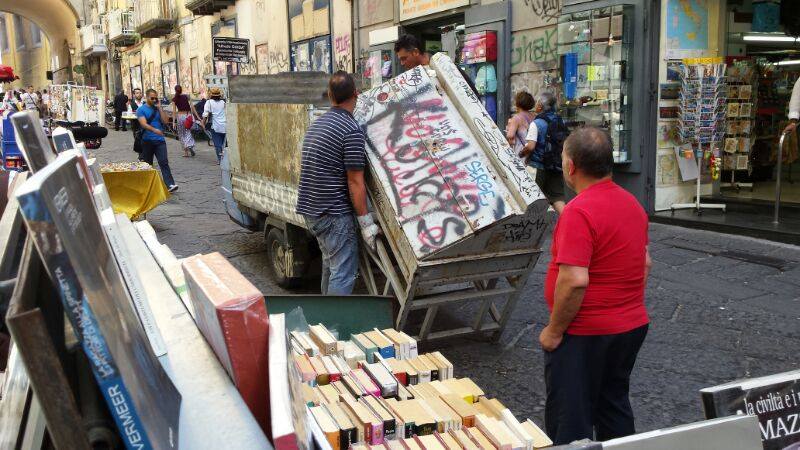 Ecco allora che, per evitare ulteriori multe, le librerie stanno provvedendo a smantellare le bancarelle, al cui posto è già apparsa un’auto parcheggiata, lì dove non può assolutamente stare. Nemmeno a dirlo, non si sono visti i vigili a multare la vettura, così come non se ne vedono, per esempio, a multare le auto in sosta selvaggia in Piazza Vittoria (e non solo) che creano traffico fino a Via Marina, a far sgomberare i marciapiedi occupati da abusivi messi lì dalla camorra, e così via. Si direbbe invece che preferiscono piuttosto frequentare i bar, come è noto a tutti i Napoletani, e occasionalmente svolgere il compitino loro affidato.