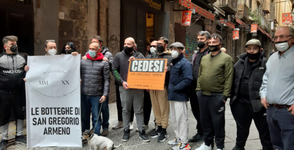 Stamattina siamo stati a San Gregorio Armeno nel centro storico di Napoli, polo d’eccellenza della tradizionale arte presepiale napoletana, dove c’è stata la protesta dei bottegai, che hanno manifestato pacificamente con le saracinesche abbassate e lo slogan “Cedesi San Gregorio Armeno“. Purtroppo, questi artigiani non hanno ricevuto le attenzioni e gli aiuti necessari per superare la crisi dovuta alla pandemia di Covid-19, e molti di loro rischiano la chiusura, per fare posto ad altre attività.