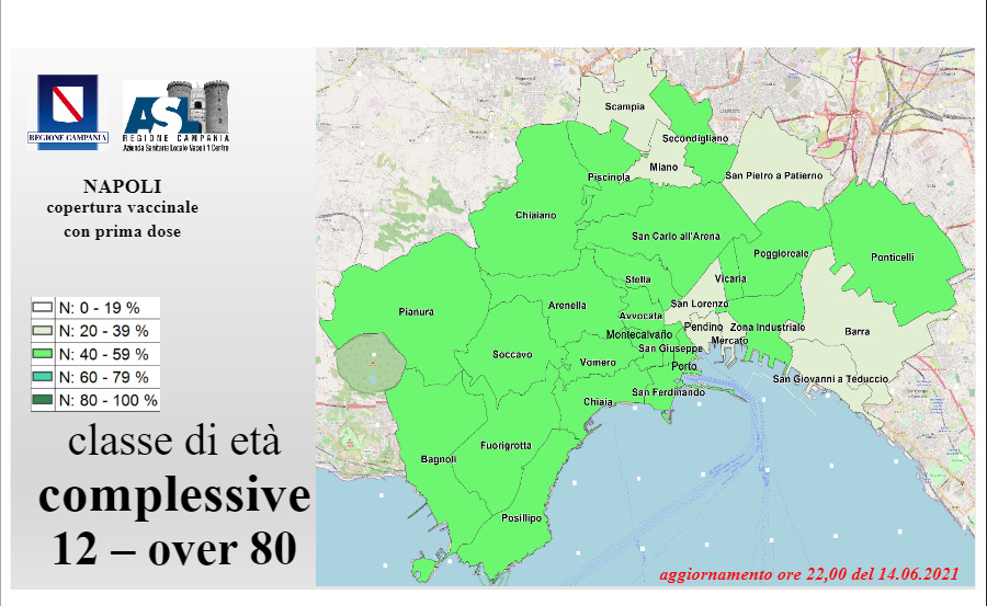 “Ai dati estremamente positivi che riguardano la vaccinazione di quanti volontariamente hanno aderito alla campagna si aggiungono però i dati che mettono in luce come a Napoli solo il 61% dei residenti (popolazione residente al gennaio 2021) abbia scelto di aderire alla campagna vaccinale. Un approfondito studio della copertura vaccinale con prima dose stratificata per classe di età e quartiere di residenza ha evidenziato infatti una sensibile differenza tra quartieri di Napoli, ed è proprio per questo che già dai prossimi giorni il centro vaccinale itinerante dell’ASL Napoli 1 Centro sarà presente nei quartieri nei quali l’adesione risulta sotto il 40% per invitare all’adesione ed effettuare l’immediata somministrazione“.