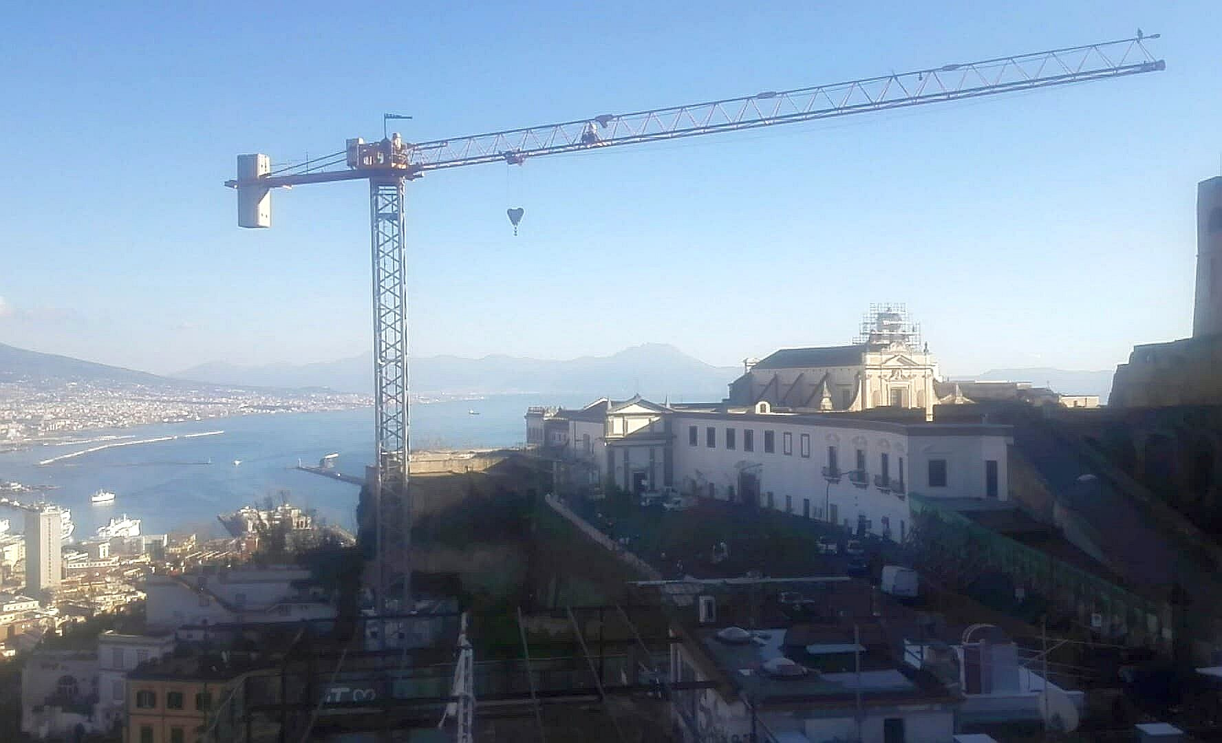 Napoli – I lavori sono fermi da anni, ma le gru restano lì ad arrugginirsi e girare su sé stesse quando tira vento. Le due strutture, oltre a deturpare i panorami da San Martino e da via Aniello Falcone, potrebbero essere pericolose proprio in quanto (almeno apparentemente) abbandonate. A segnalare questa situazione è Gennaro Capodanno, presidente del Comitato Valori Collinari. Una segnalazione è stata inviata al Comune di Napoli.