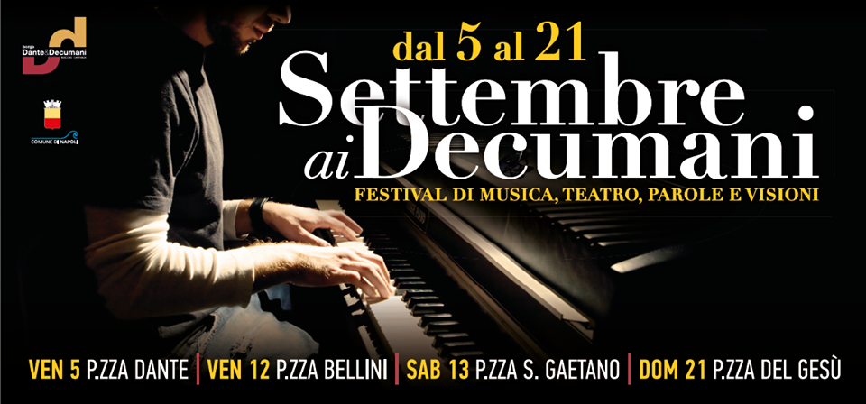 Nell’ambito di “Sole luna e tallia” e organizzato dall‘Assessorato alla Cultura e Turismo di Napoli è “Settembre ai decumani“. Dal 5 al 21 Settembre una serie di eventi ed iniziative per la promozione del Centro Commerciale Naturale Borgo Dante & Decumani.
