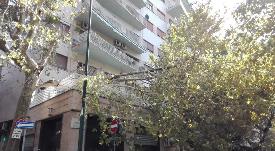 Un ramo di un grosso albero si è spezzato ed è crollato sul terrazzo di un’abitazione. Non ci sono feriti ma solo danni, il terrazzo era infatti vuoto quando è accaduto il fatto. Il ramo, particolarmente spesso, ha divelto la ringhiera in ferro. Poco dopo il cedimento è intervenuta la polizia municipale, che ha chiuso la strada al traffico. La circolazione stradale è subito andata in tilt.