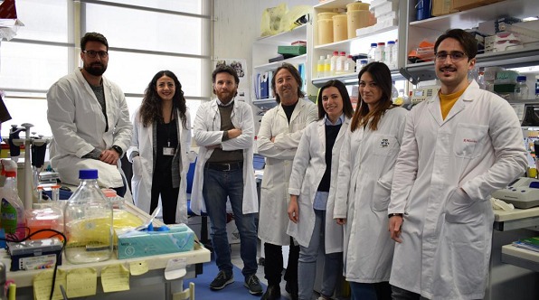 Lab Neuroscienze – da sx Tommaso Nuzzo, Arianna De Rosa, Francesco Errico, Alessandro Usiello, Martina Garofalo, Anna Di Maio, Roberto Marotta