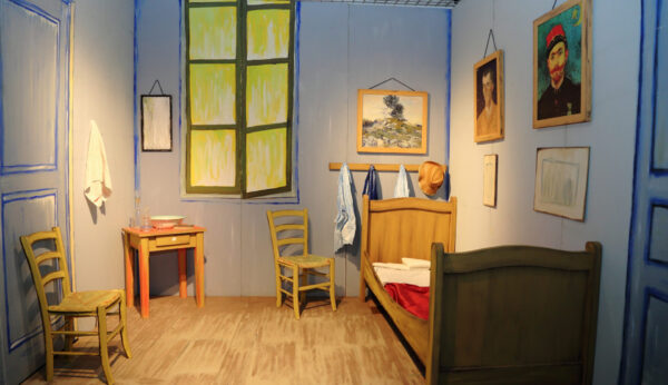 Nell’esposizione, in lingua italiana e inglese ed estesa in uno spazio di oltre 700 mq, l’opera di van Gogh è suddivisa per aree tematiche, mostrando al pubblico ritratti, paesaggi, autoritratti e nature morte, mentre nella Stanza segreta appaiono per la prima volta incisioni, acqueforti, acquerelli, dipinti a olio originali e rappresentativi di un ampio periodo, dalla seconda metà dell’800 al primo ventennio del ‘900. Particolarmente suggestiva è anche la riproduzione in dimensioni reali della celebre stanza da letto della “casa gialla” di Arles in Provenza, in cui l’artista visse per un breve ma significativo periodo tra il 1888 e il 1889, insieme ad una collezione di abiti artistici dedicati alle opere di van Gogh e facenti parte del progetto culturale “Art Couture Sicily” ideato dalla fashion art designer Gisella Scibona, attivamente impegnata nel settore, anche in favore di altri artisti. La mostra, inoltre, ospita anche tre mosaici realizzati dai bambini della “Fondazione Bambini e Autismo Onlus” di Pordenone, sul modello di altrettanti noti dipinti di van Gogh.