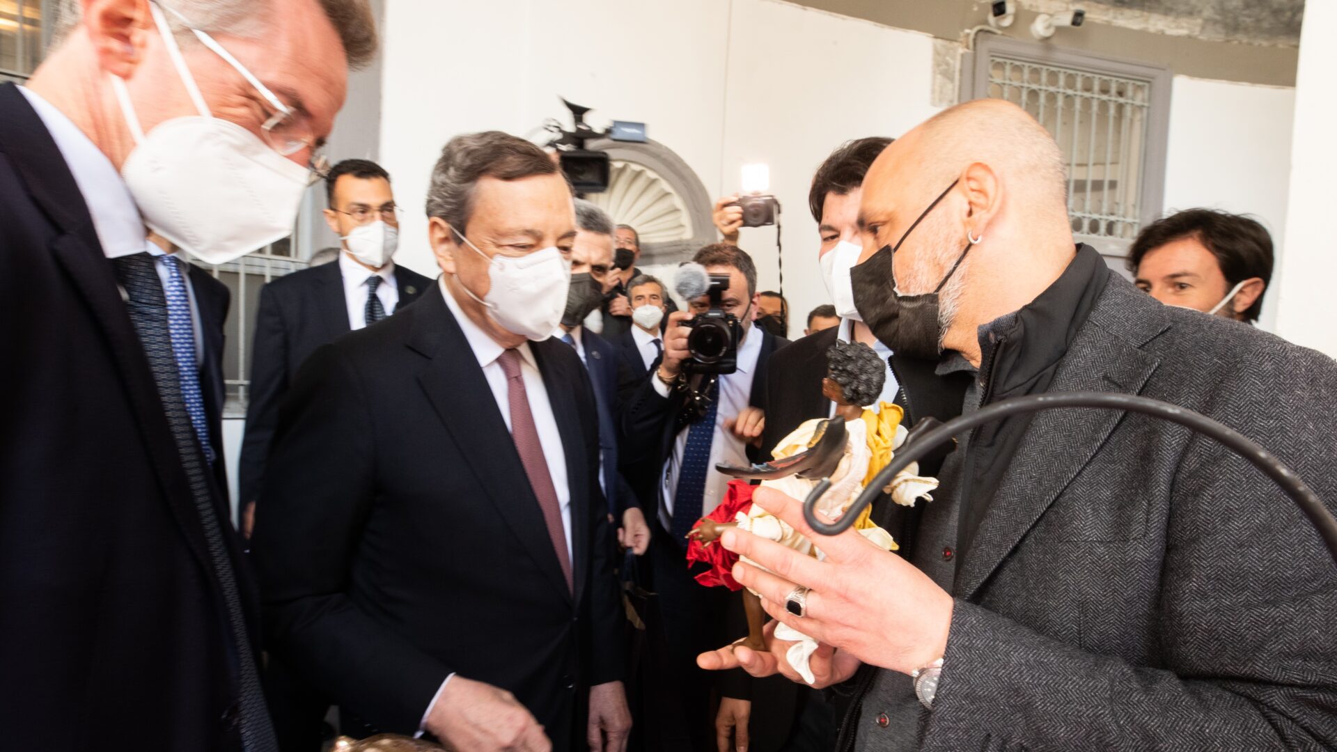 Il Presidente del Consiglio, Mario Draghi, arrivato a Napoli, dopo la firma del Patto al Maschio Angioino, è giunto al Rione Sanità spaziando tra la Basilica e le Catacombe di S. Gaudioso, ricevendo in dono un Angelo Moro.
