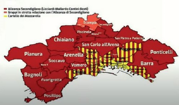 Alleanza di Secondigliano e clan Mazzarella, “dettano le linee guida alle associazioni aderenti le quali, pur essendo dotate della piena autonomia nella gestione degli affari interni, non possono sottrarsi all’influenza dei due cartelli egemoni“. Nella Alleanza di Secondigliano i clan Contini, Licciardi e Mallardo “costituirebbero oggi significative realtà imprenditoriali, controllando catene di ristorazione e attività commerciali in gran parte del territorio cittadino“. Il clan Licciardi ha subito un duro colpo con l’arresto di Maria Licciardi, reggente del sodalizio, nell’agosto 2021 a Roma.
