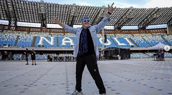 “Domani si torna allo Stadio di Napoli!! L’ultima volta è stata nel 2015, quando ho riaperto lo stadio, chiuso per 10 anni, al Rock .. È stato un concerto meraviglioso. Quando i napoletani cominciano a cantare… praticamente tu ti puoi fermare… perché cantano da Dio. Era il San Paolo, adesso è lo stadio intitolato al grande Diego Armando Maradona. E io sono ancora più onorato. Ho sempre avuto un grande affetto e una grande stima per Diego come calciatore e anche come uomo. Sarà il primo stadio del Vasco Live! Ci vediamo domani!!!”