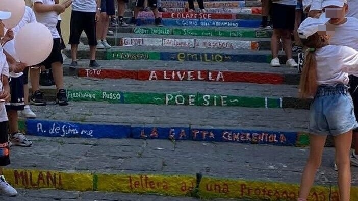 “Abbiamo inaugurato la prima scalinata della cultura grazie all’iniziativa promossa dal Centro Diurno Progetto OASI di via Cagnazzi di Pina Conte. Queste scale abbandonate sono state riqualificate grazie all’intervento dell’artista Paolo La Motta il quale, con l’aiuto dei bambini, hanno intitolato ogni scala a titoli e autori che hanno lasciato l’impronta del Rione Sanità. Riqualifichiamo gli spazi attraverso la cultura” – si legge sulla pagina Facebook della III Municipalità.