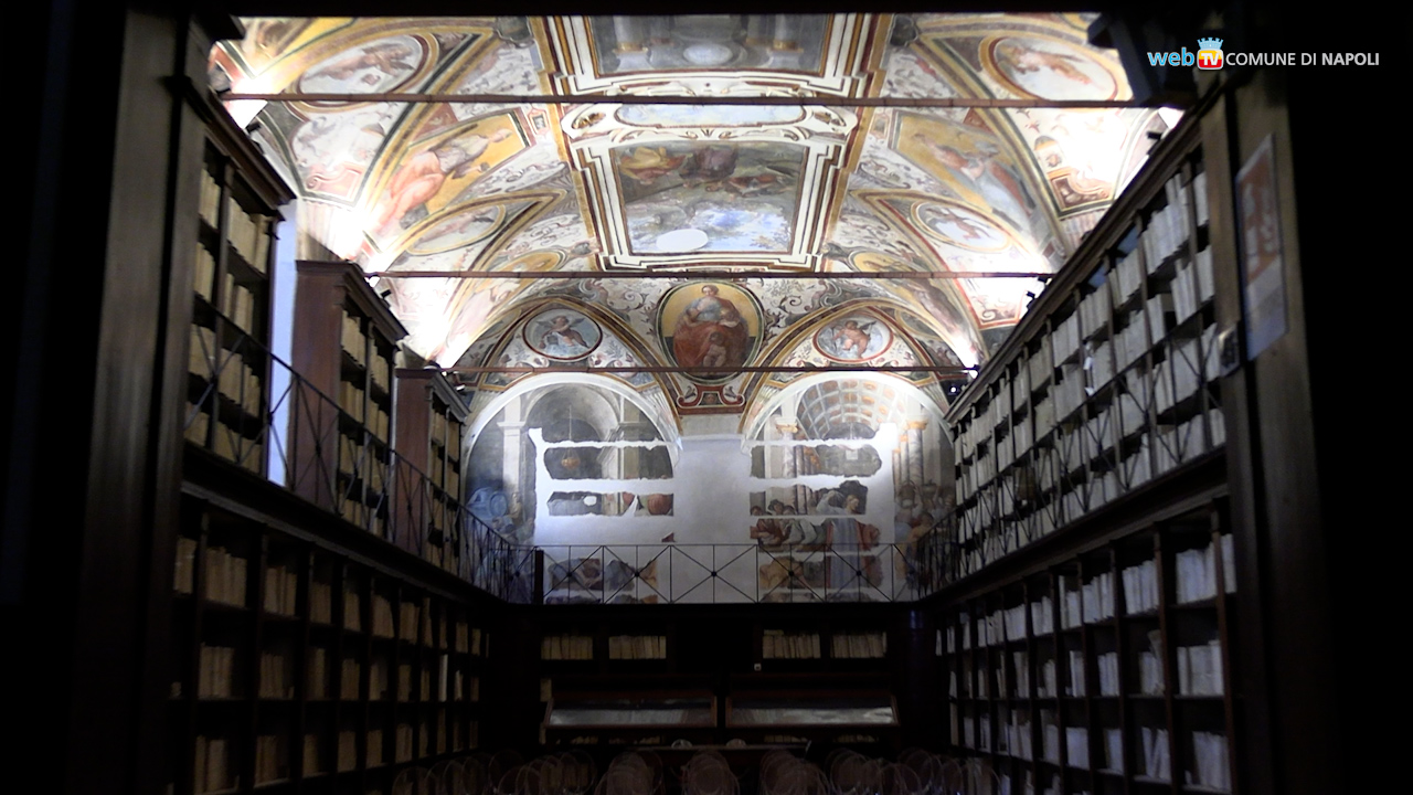 Ambientazioni suggestive tornano restaurate alla fruizione pubblica: l’atrio ospita il prezioso ciclo di affreschi rinascimentali con le storie benedettine di Antonio Solario detto lo Zingaro, nella Sala Catasti tornano alla luce anche gli affreschi del pittore greco Belisario Corenzio rinvenuti asportando antiche scaffalature.