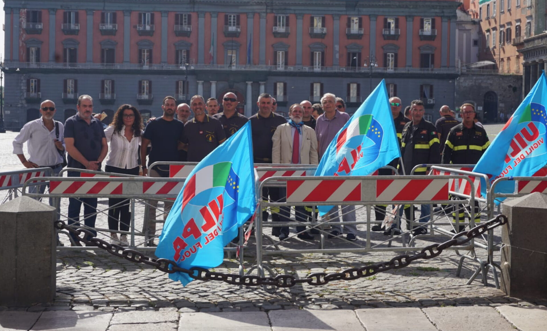 Proteste questa mattina dei Vigili del Fuoco a Piazza del Plebiscito a Napoli. I pompieri si sono radunati in un presidio organizzato dalle varie sigle sindacali in diverse città di Italia. Mancano infatti uomini e mezzi per una categoria che ha lavorato sodo durante tutta l’estate.