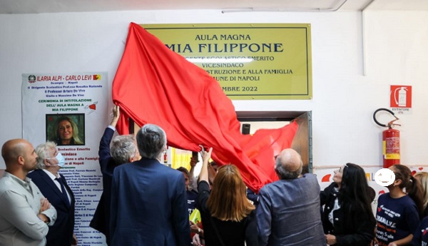 “A Mia Filippone, che ha dato tanto alla nostra città e alla scuola, dedico questa giornata, felice che l’aula magna nella scuola Alpi-Levi di Scampia porti il suo nome“, ha concluso.