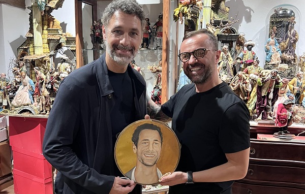 “Oggi in bottega da noi Raul Bova con la compagna Rocio Morales…..visitando la mia galleria di arte presepiale rimanendo senza parole per le mie opere“, ha scritto di Virgilio.