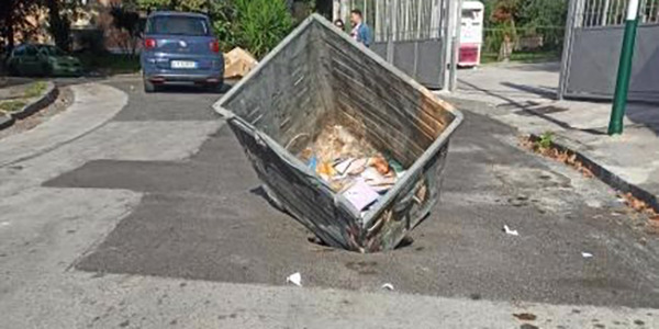 La buca era stata coperta dapprima con dei ferri ed un telo, in attesa dell’intervento da parte dell’amministrazione. Con il passare del tempo tuttavia, e senza l’interessamento della Municipalità o del Comune, la voragine si è allargata. I cittadini allora hanno pensato di porre in essere una “protesta” più clamorosa ma silenziosa: un grosso bidone della spazzatura per segnalare la buca.