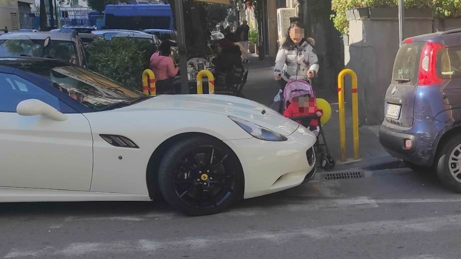 Una Ferrari parcheggiata sulle strisce pedonali ed in modo da ostruire il passaggio sullo scivolo per i disabili. La foto è stata scattata a Napoli, all’incrocio tra Corso Meridionale e via Pavia, proprio mentre una madre stava cercando di attraversare la strada con il passeggino. Uno scatto che fa riflettere e suggerisce una regola molto triste che vede da un lato la soverchieria dei prepotenti e dall’altro chi si deve adattare, costretti a rinunciare al più elementare diritto di poter passeggiare in tranquillità e sicurezza.