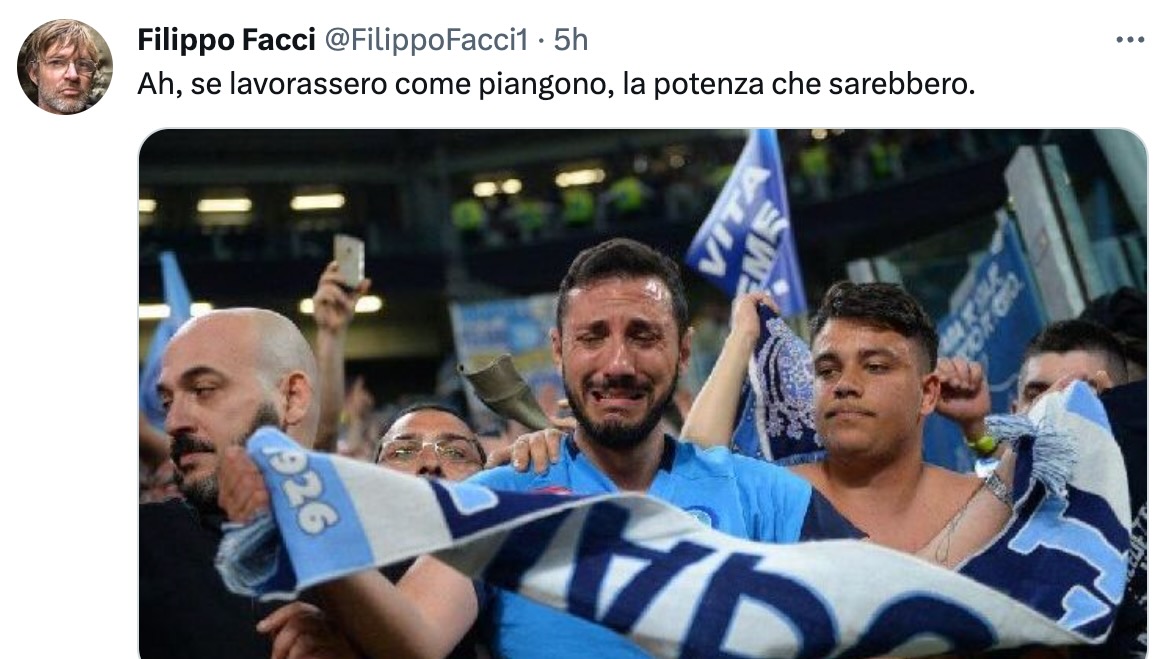 Filippo Facci torna a scrivere commenti razzisti contro i napoletani. Il giornalista, iscritto all’Ordine della Lombardia, cade di nuovo nel vizietto che l’ha reso famoso ai più: dopo la sconfitta del Calcio Napoli per mano del Milan, con la conseguente eliminazione dalla Champions League, ha pubblicato la foto di un tifoso azzurro in lacrime su Twitter commentando: “Ah, se lavorassero come piangono, che potenza sarebbero”. In passato aveva affermato che “Napoli fa schifo”.