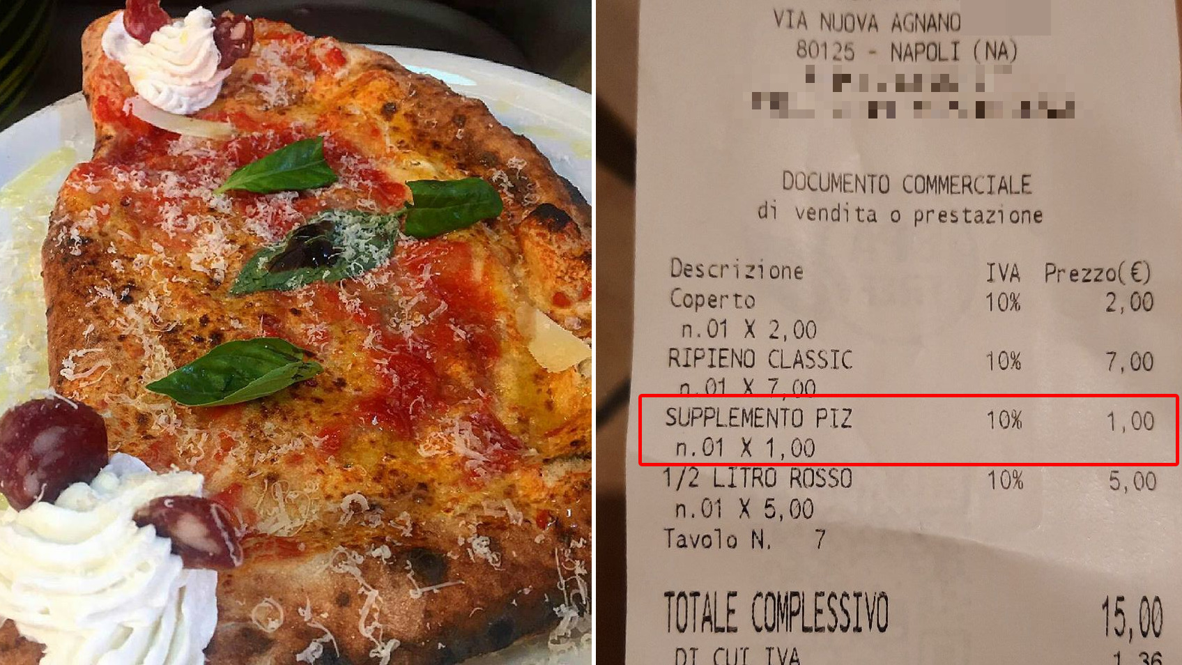 Lo scontrino è stato pubblicato su Facebook dall’uomo che ha aggiunto: “Un euro di supplemento per aver chiesto il basilico sulla pizza ripiena che non era previsto tra gli ingredienti”. Il locale in questione evidentemente non aggiunge il basilico sul ripieno classico, a differenza di tante altre pizzerie. Ma il problema non è questo: aggiungere nello scontrino l’addebito di un euro per qualche fogliolina di basilico è qualcosa di – eticamente – esagerato.
