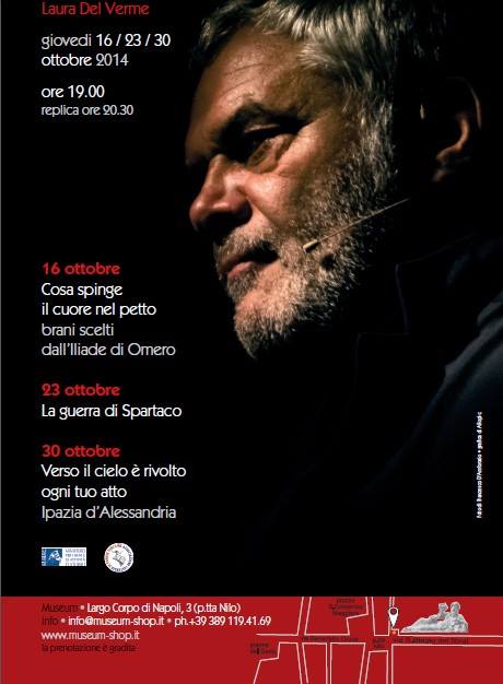 “Percorsi di libertà” è una rassegna di letture sulle passioni, le invidie, le virtù e i difetti dell’animo umano raccontate attraverso i miti e le emozioni degli eroi. Un reading teatrale interpretato da Peppe Barile con le musiche e le ambientazioni sonore di Lello Settembre e Daniele Sepe in tre appuntamenti che si terranno dal 16 al 30 ottobre ottobre presso il Nilo Museum shop.