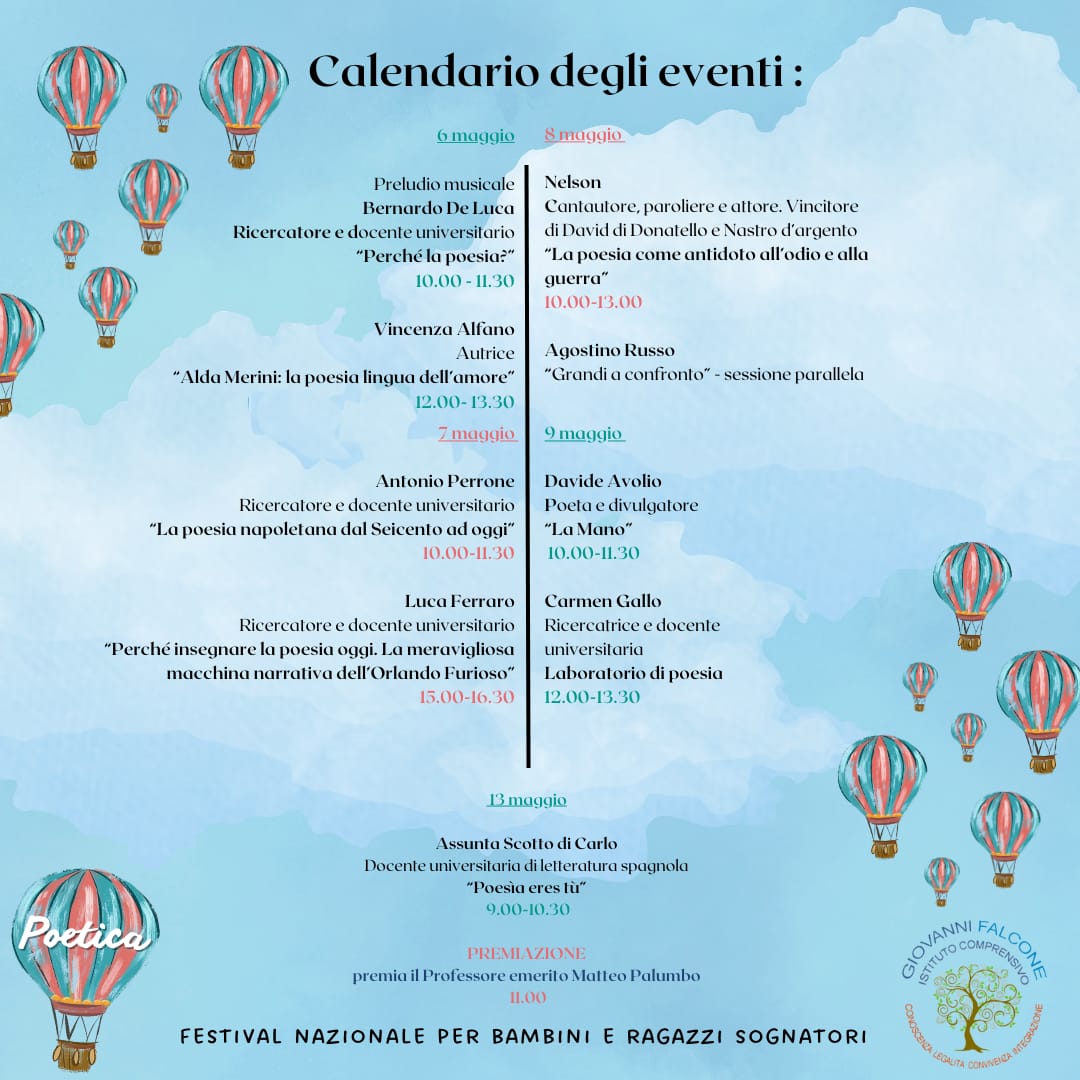 La prima edizione di Poetica presso l’Istituto Comprensivo Giovanni Falcone di Pianura, Napoli. Dal 6 al 13 maggio 2024 si terrà il festival nazionale dedicato a bambini e ragazzi, con un concorso che permette ai partecipanti di poter vincere un mare di libri messi a disposizione da Treccani e Giunti TVP Contatto Scuola.
