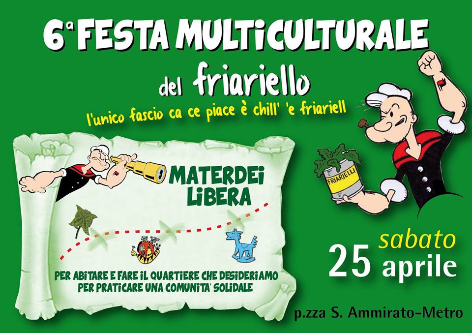 L’appuntamento è per domani, 25 aprile, presso piazza S. Ammirato, nelle vicinanze della metro fermata Materdei. Tantissime le iniziative in programma per un pomeriggio ed una serata all’insegna dei sorrisi e dell’allegria.