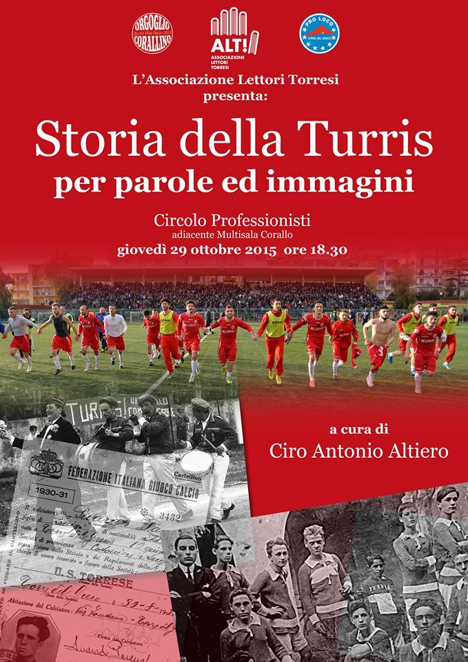 Si è tenuta ieri pomeriggio, presso il Circolo Professionisti di Torre del Greco, la presentazione di “Storia della Turris”, un incontro organizzato da ALT (Associazione Lettori Torresi) e presentato da Ciro Antonio Altiero, autore del libro “FC Turris 1944. Il football a Torre del Greco”. Durante la presentazione, si è ripercorsa tutta la cronistoria della Turris: dai primi anni 20, agli anni dell seconda guerra mondiale, passando per i favolosi anni 70, fino ai giorni nostri.