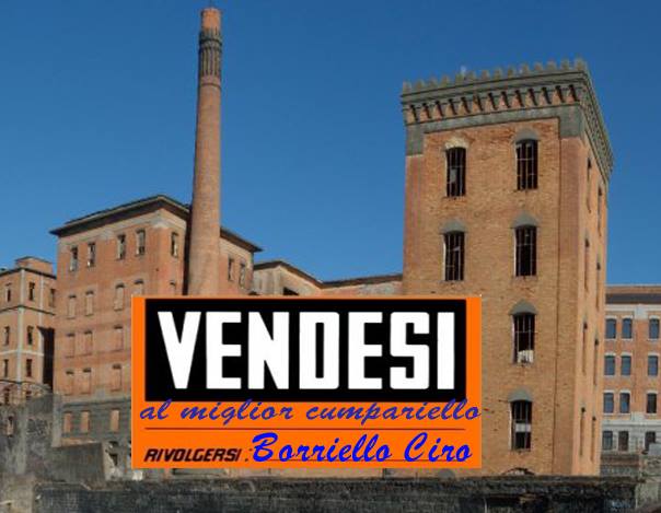 Torre del Greco. “Vendesi al miglior cumpariello: rivolgersi a Ciro Borriello”. Ironia amara sul caso della vendita dei Mulini Meridionali Marzoli, inseriti tra i beni alienabili del Comune. Su Facebook spunta il cartello di messa in vendita del complesso di via Calastro con un feroce commento che si riferisce alla privatizzazione della struttura. Domani sera assemblea pubblica del Fronte Popolare a difesa dei Mulini Meridionali Marzoli per impedire l’operazione finanziaria.