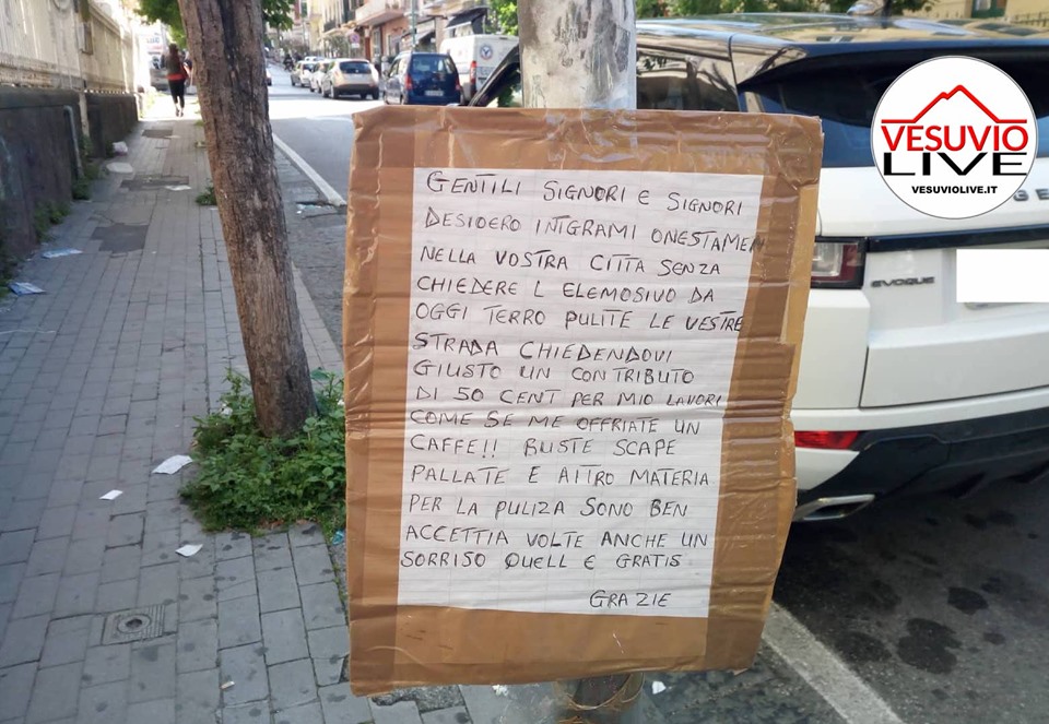 È sorprendente pensare che, in cambio di un aiuto così piccolo, qualcuno possa svolgere un lavoro tanto significativo per la città di Torre del Greco. Indubbiamente gli abitanti ne beneficeranno non solo a livello estetico, ma anche e soprattutto a livello umano. Sono proprio le ultime righe del cartello a darci un’idea della profonda umanità che ha dato vita a questo gesto: “Buste, scope, palette e altri materiali per la pulizia sono ben accetti. A volte anche un sorriso, quello è gratis“.