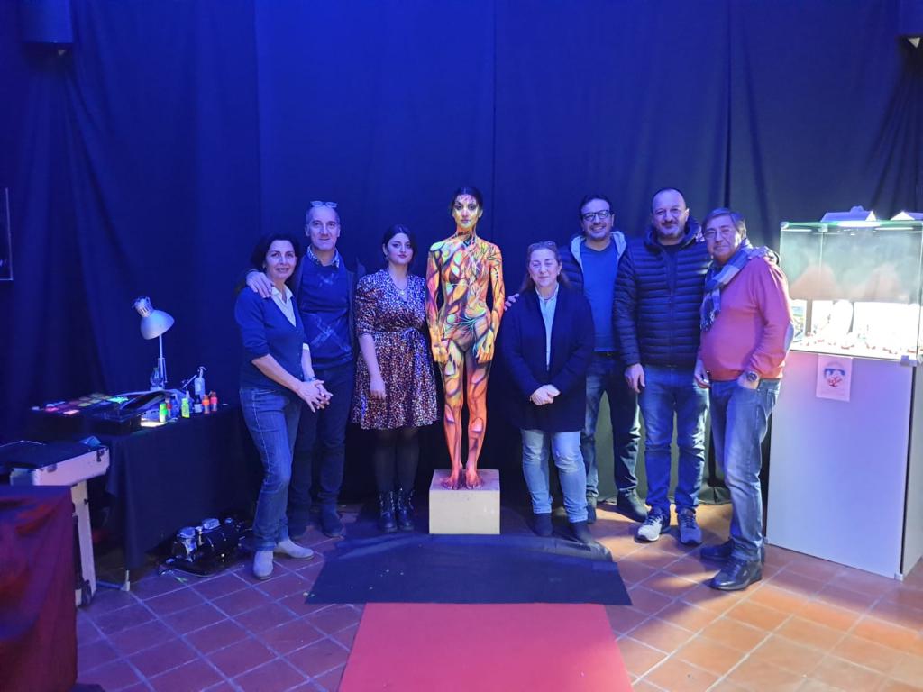Nell’occasione l’associazione guidata da Rosa Visciano ha proposto una serie di riflessioni sulla parità di genere nel mondo dell’arte. Un momento impreziosito dalla performance artistica della body painter Veronica Bottigliero, a tutti nota anche come Weronique Art, che ha trasformato la modella Giuseppina Friscuolo in un grande e meraviglioso “cammeo umano”. Un’opera realizzata durante la serata, immortalata dagli scatti di Francesco Sangiovanni e ispirata alle bellezze in esposizione nelle sale allestite al piano terra della casa comunale: “Non nascondo – afferma Veronica Bottigliero, che miete positivi consensi in tutta Italia e che ha scelto di tornare a Torre in occasione di Arte a Palazzo – che sono rimasta molto colpita in particolare dalle opere esposte nella sala dedicata a Carlo Parlati. I colori che ho scelto, oltre a richiamare il corallo e il magma del Vesuvio, hanno ricordato proprio quelli preferiti dal compianto artista torrese”.
