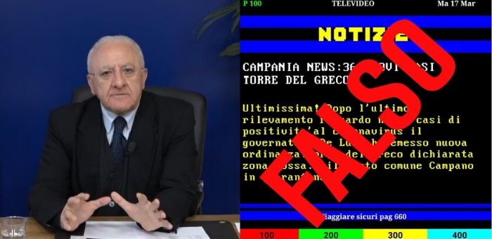 Ormai non si contano più le notizie false che stanno girando sul conto dell’emergenza coronavirus. L’ultima fake news riguarda una presunta ordinanza di chiusura del Comune di Torre del Greco, che il presidente della Regione Campania Vincenzo De Luca ha prontamente smentito con un comunicato.