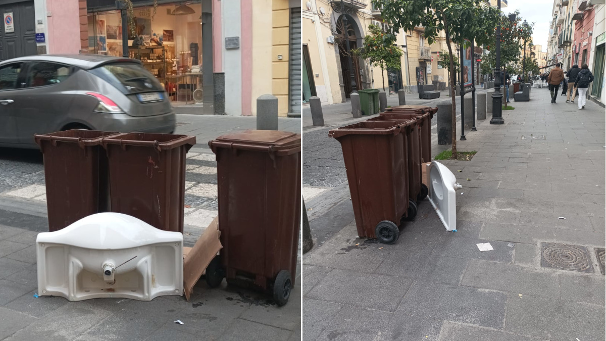 Un pezzo di sanitario, per l’esattezza un lavandino, è comparso come per magia nella centralissima Via Roma a Torre del Greco venerdì mattina. Le foto, inviateci da un commerciante della zona, testimoniano del pezzo di ceramica in bella mostra proprio su una delle vie principali dello shopping.